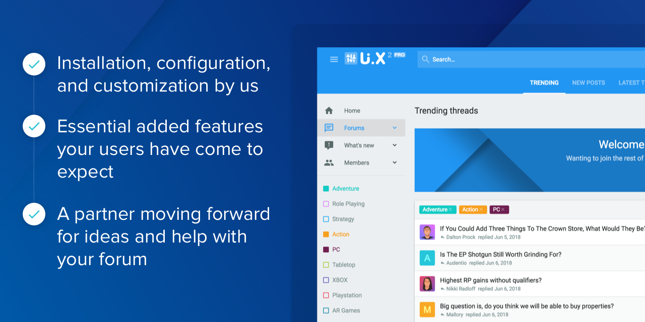 A more opinionated take on our flagship product. UI.X Pro is the ideal forum experience based on a combination of our knowledge gained after a decade of helping customers build thriving communities and methods...