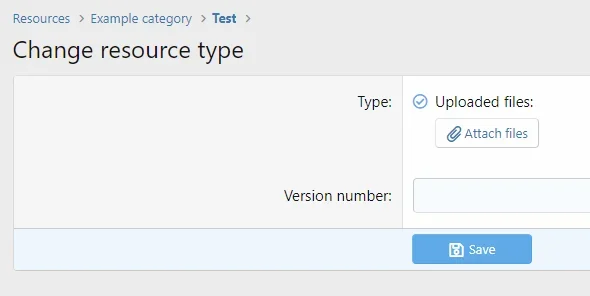 2. If a category is created with a single resource type of e.g. fileless, a resource is then created, and the category is changed to e.g. uploaded file, the 'Change resource type' function lists both options - the existing resource type and the new type, but selecting the existing type (which is no longer valid), results in an error: