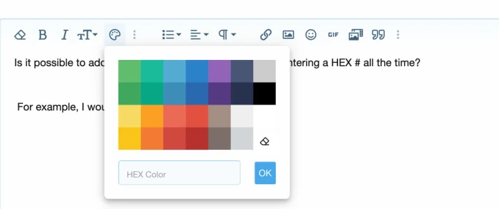 XF 2.2 Is there a way to add default colors to the color picker in the editor?