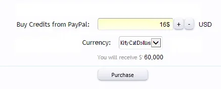 7. Is it possible to buy Credits? from paypal or any other paysite you add in the admin panel using my fake kitty cat dollars and conversion rate?