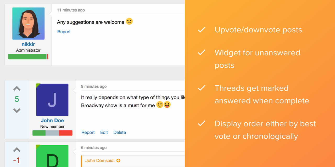 • Ability to set specific threads as Q&A threads